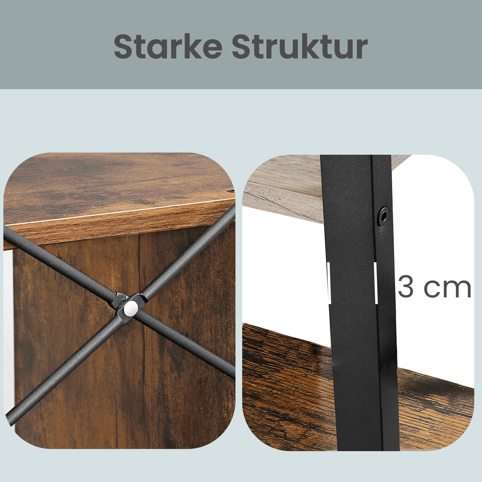 Ši 5 pakopų industrinio stiliaus knygų lentyna suteiks jūsų namams vintažinio žavesio ir modernios lofto estetikos. Derinys iš tvirto metalo rėmo ir medžio drožlių plokštės sukuria stabilų ir patvarų baldą, tinkantį kasdieniam naudojimui. X formos atramos ir šoniniai skersiniai ne tik sustiprina konstrukciją, bet ir apsaugo daiktus nuo iškritimo. Reguliuojamos kojelės leidžia kompensuoti nelygias grindis, o apsaugos nuo apvirtimo įtaisas užtikrina saugų stovėjimą bet kuriame kambaryje. Dėl paprasto surinkimo ši lentyna greitai pasiruoš pasirūpinti jūsų knygomis, dekoracijomis ar augalais.