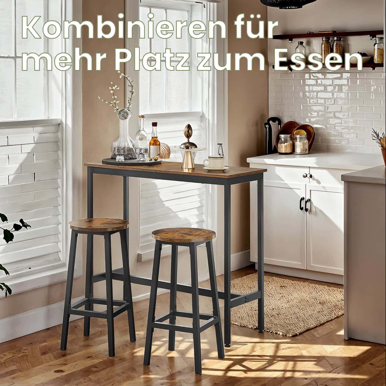 Ieškote kompaktiško ir stilingo sprendimo savo pusryčių ar baro kampeliui? Šis industrinio dizaino baro stalas su dviem patogiomis taburetėmis puikiai tiks tiek mažam butui, tiek moderniam loftui. 40 x 100 cm stalviršis suteikia pakankamai vietos jaukiems pusryčiams ar vakariniam gėrimui su draugais. Tvirtas plieninis rėmas, reguliuojamos stalo kojelės ir stabilios taburetės garantuoja patikimą naudojimą kasdien. Paprasta surinkti – su aiškiomis instrukcijomis pradėsite naudoti vos po kelių minučių.