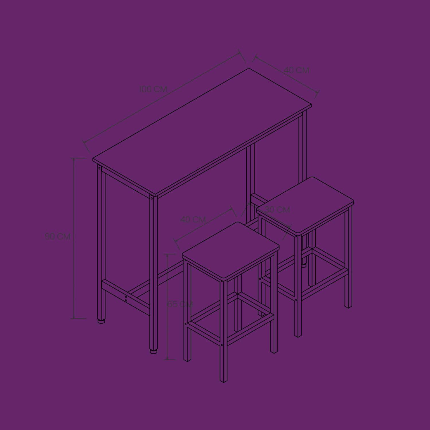 Stilingas industrinio dizaino baro stalas su dviem patogiomis kėdėmis sukuria jaukią atmosferą tiek rytiniams pusryčiams, tiek vakaro gėrimams. Aukštis ir kompaktiški matmenys suteikia pakankamai vietos kavos puodeliui, užkandžiams ar lengviems patiekalams. Reguliuojamos kojelės užtikrina stabilumą ant įvairių grindų paviršių, o komplekte esanti apsauga nuo apvirtimo padidina saugumą. Naudojant aiškias instrukcijas ir pažymėtas dalis, visas komplektas surenkamas greitai ir lengvai.