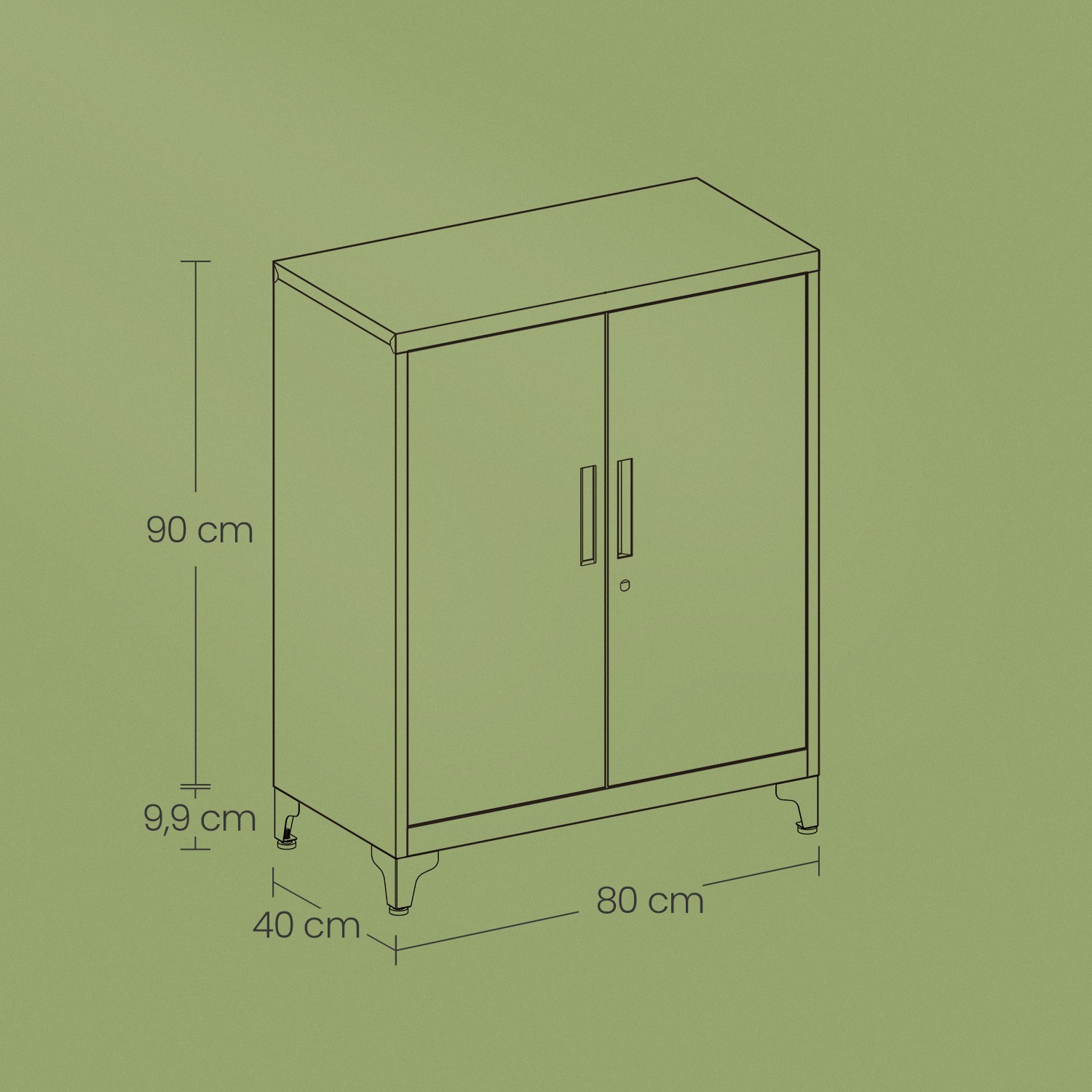 Erdvi vidinė struktūra su reguliuojamo aukščio lentynomis leidžia pritaikyti spintos vidų pagal poreikius: nuo dokumentų segtuvų iki kitų biuro reikmenų. Aukštos kokybės plienas užtikrina tvirtumą ir ilgaamžiškumą, o atsparus paviršius padeda išlaikyti nepriekaištingą išvaizdą ilgą laiką.