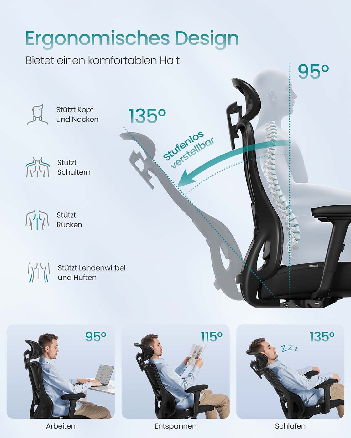 Ergonomiška žaidimų kėdė su S formos reguliuojamu atlošu (95°–135°) prisitaiko prie jūsų laikysenos darbo, poilsio ar žaidimų metu. Kvėpuojantis tinklinis audinys ir paminkštinta sėdynė užtikrina komfortą, o reguliuojami galvos, juosmens atramos ir porankiai leidžia pritaikyti kėdę individualiai. Tvirta konstrukcija su dujiniu amortizatoriumi ir patikrintu pagrindu garantuoja saugumą ir ilgalaikį naudojimą.