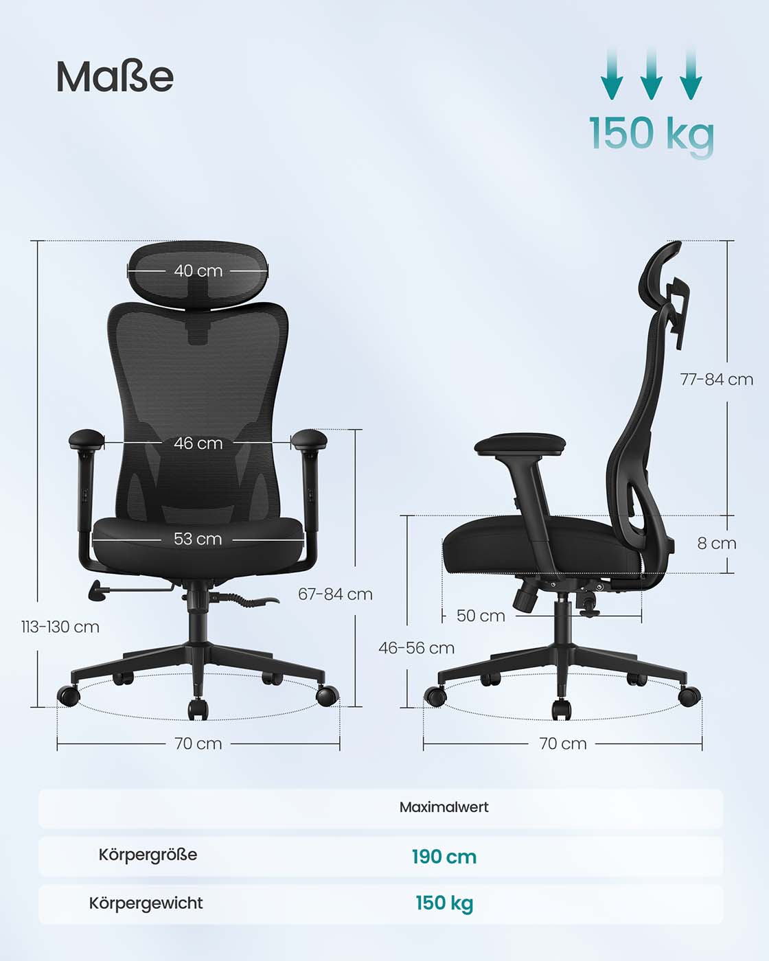 Maksimali statinė apkrova: 150 kg