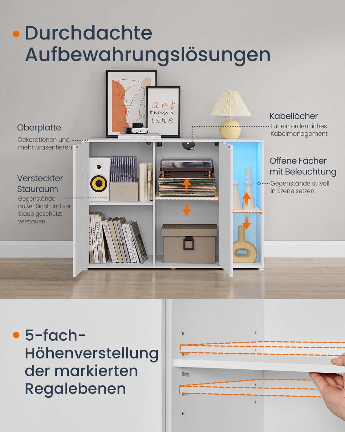Ieškote modernaus baldo, kuris sujungtų funkcionalumą su stiliumi? Ši 100 cm pločio indauja riešutmedžio spalvos su nuotoliniu būdu valdomu RGB apšvietimu puikiai dera tiek prie minimalistinio, tiek prie klasikinio interjero. Unikali beįrankinė surinkimo technologija leidžia ją surinkti vos per 15 minučių. Atviri skyriai su stiklinėmis lentynomis puikiai tinka daiktų eksponavimui, o uždari skyriai – daiktų paslėpimui. Reguliuojamos lentynos ir laidų angos užtikrina maksimalų pritaikomumą ir tvarką. Papildoma apsauga nuo apvirtimo ir reguliuojamos kojelės garantuoja saugumą bei stabilumą.