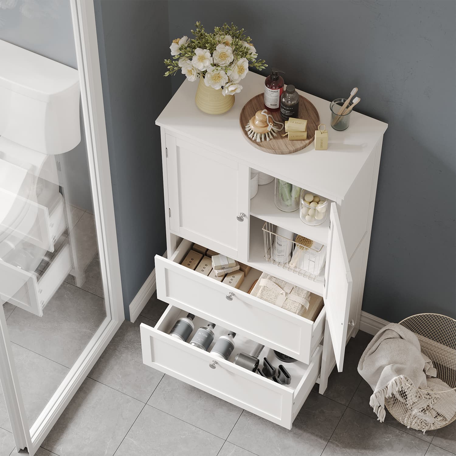 Klasikinė balta vonios spintelė su durelėmis ir stalčiais, 60 × 110 cm