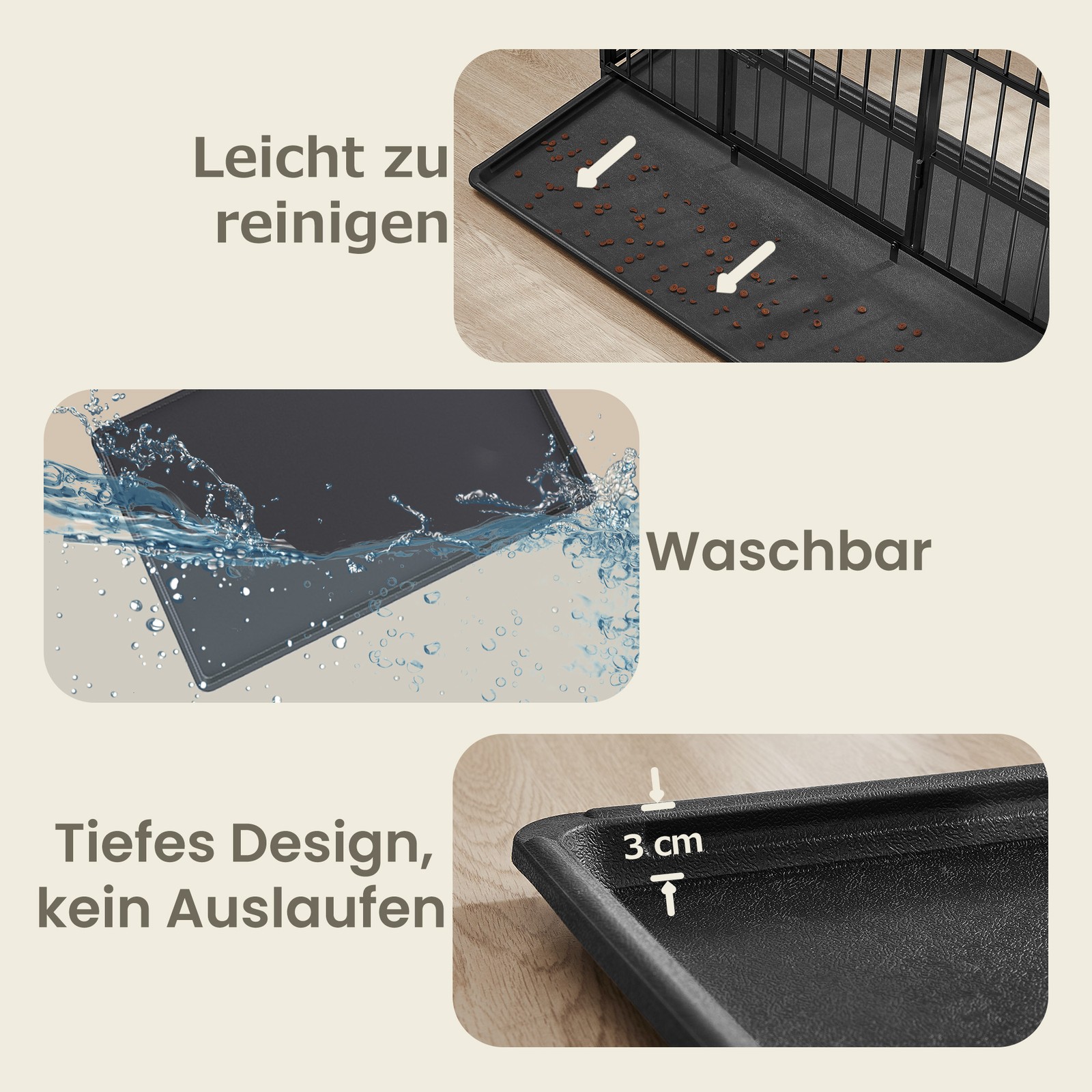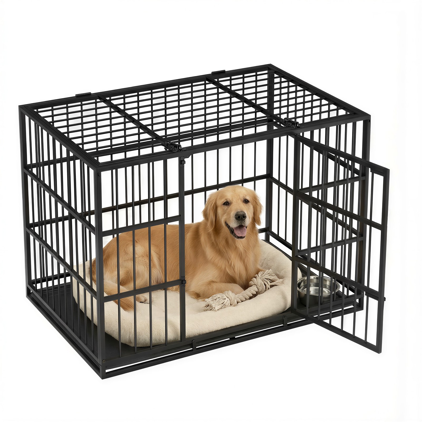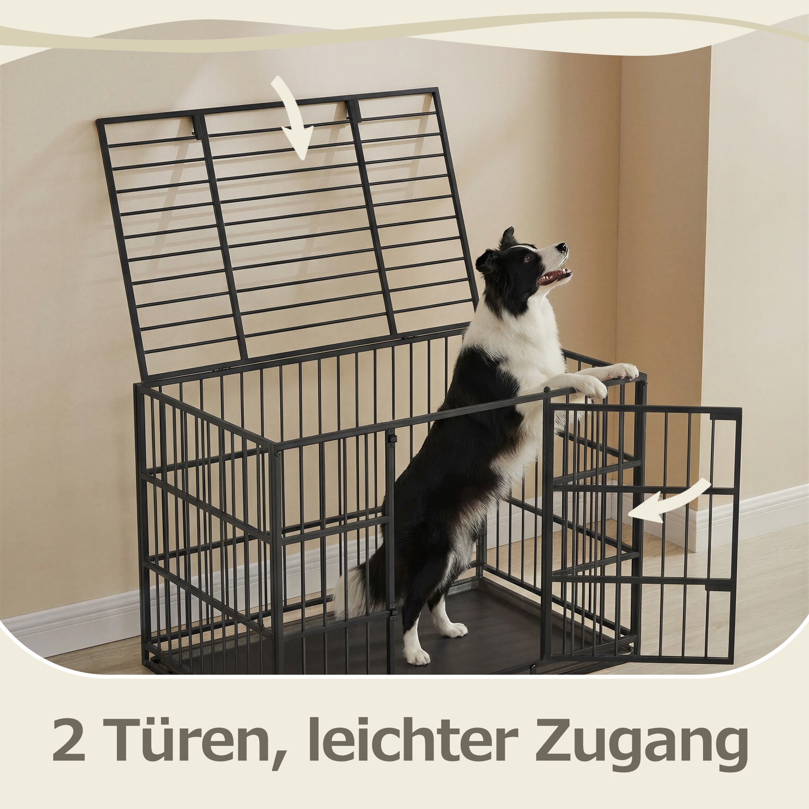 Viršutinė dalis gali būti nuimama, todėl narvą galima naudoti ir kaip atvirą aptvarą. Lygūs, rūdims atsparūs metaliniai vamzdžiai užtikrina saugų naudojimą be aštrių kraštų.