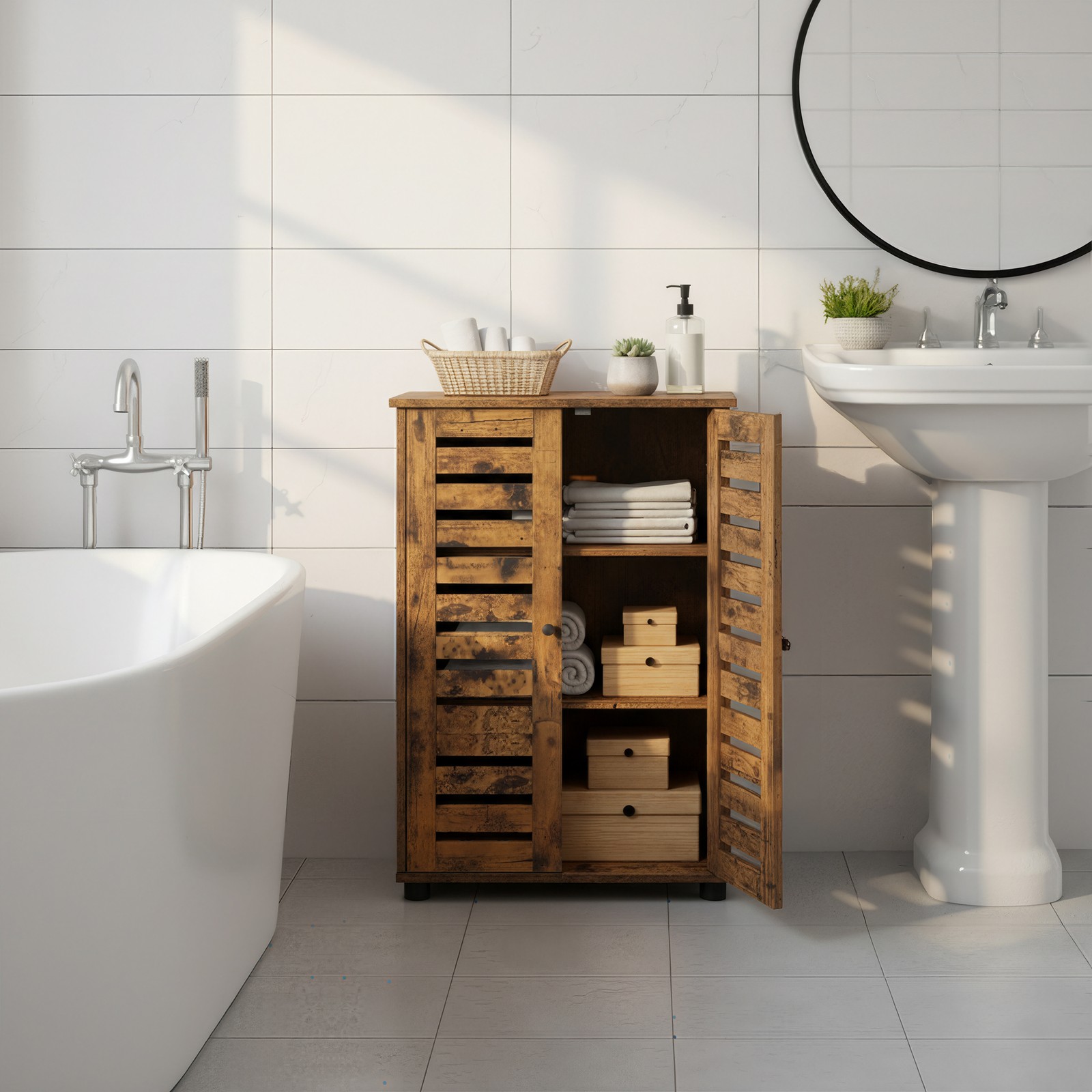 Ši spintelė puikiai tinka įvairioms namų erdvėms – vonios kambariui, svetainei, miegamajam ar darbo kambariui. Patvari konstrukcija iš kokybiškų medžiagų užtikrina stabilumą ir ilgą tarnavimo laiką. Surinkimas nesudėtingas dėl aiškių, lengvai suprantamų instrukcijų ir pažymėtų detalių.