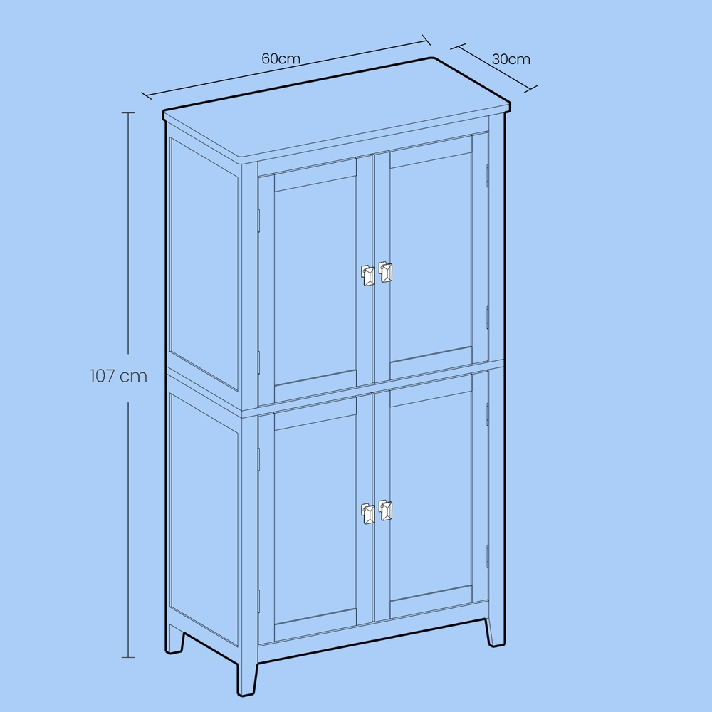 Klasikinio dizaino laisvai pastatoma vonios spintelė suteikia praktišką ir estetišką daiktų laikymo sprendimą bet kuriam vonios kambariui. Viršutinė ir apatinė spintelės su keturiomis durelėmis siūlo pakankamai vietos rankšluosčiams, higienos priemonėms, kosmetikai ir kitiems kasdieniams daiktams.