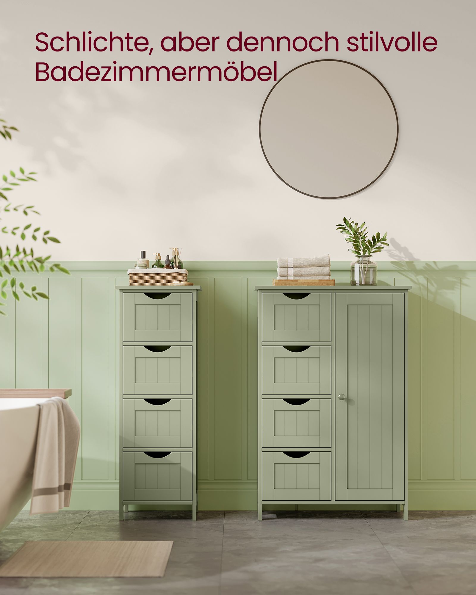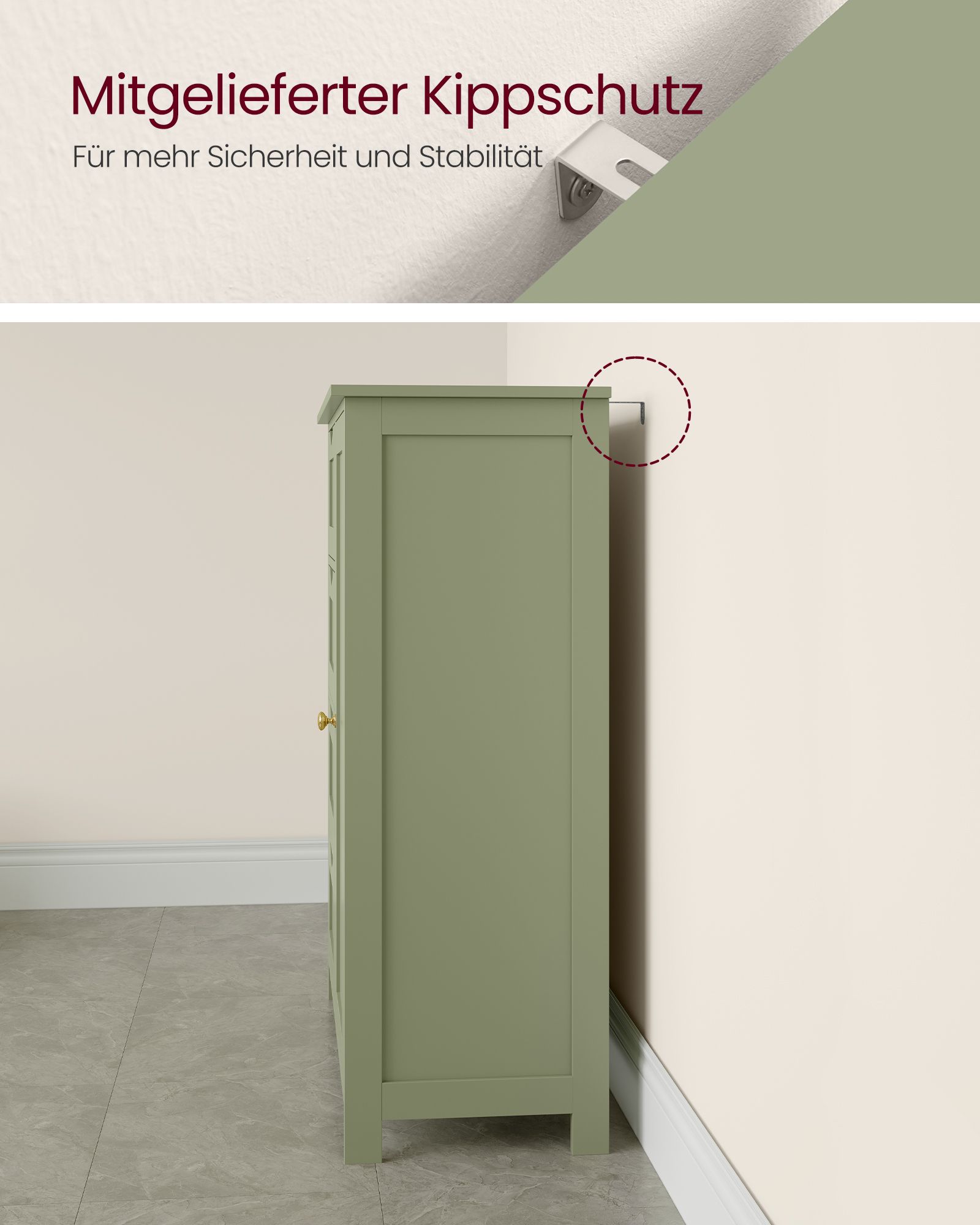 Miško žalios spalvos paviršius ir minimalistinis dizainas suteikia elegancijos, todėl spintelė lengvai derės ne tik vonios kambaryje, bet ir svetainėje ar koridoriuje. Surinkimas paprastas – aiškios instrukcijos ir pažymėtos dalys leidžia greitai paruošti baldą naudojimui.