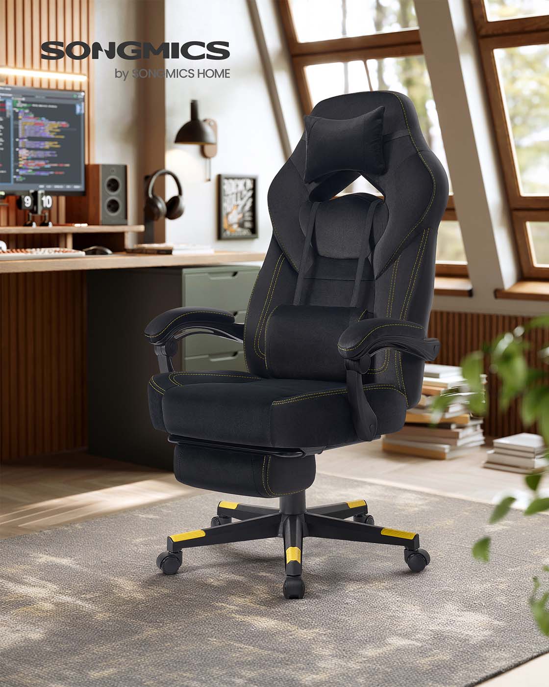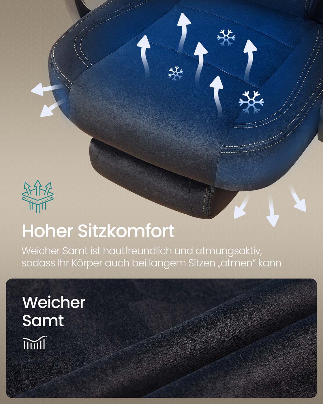 Ieškote aukščiausio komforto ilgiems žaidimų ar darbui prie kompiuterio? Ši juoda aksominė žaidimų kėdė su reguliuojama galvos atrama ir ištraukiama kojų atrama sukurta taip, kad palaikytų jūsų kūną net ir po kelių valandų sėdėjimo. Ergonomiška forma, tankus putplasčio paminkštinimas ir minkštas kvėpuojantis audinys leidžia maksimaliai atsipalaiduoti, o atlošo kampo reguliavimas (nuo 90° iki 135°) leidžia prisitaikyti prie bet kokios veiklos – nuo žaidimų iki poilsio.