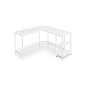 Kampinis biuro stalas industrinis su lentynomis
