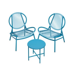 Balkono baldų komplektas 3 vnt. – stalas ir 2 kėdės, jūros mėlyna, su ergonominiu atlošu