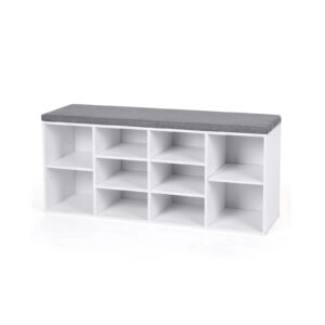 Prieškambario batų suoliukas su paminkštinimu ir 10 atvirų lentynų