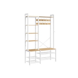 Drabužių kabykla su suoliuku ir 2 lentynomis balta